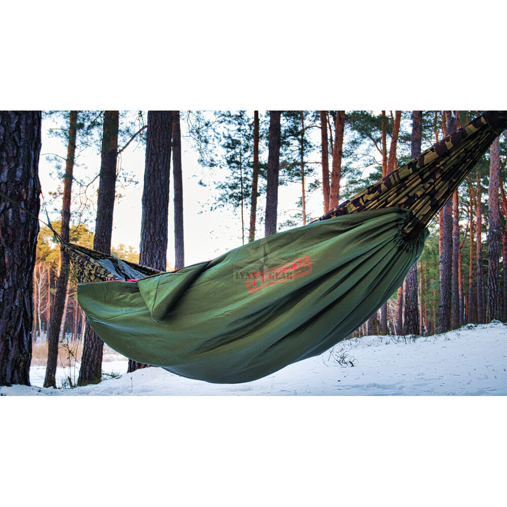 - Underquilt: An insulating layer suspended under a hammock to prevent heat loss caused by compressed insulation.