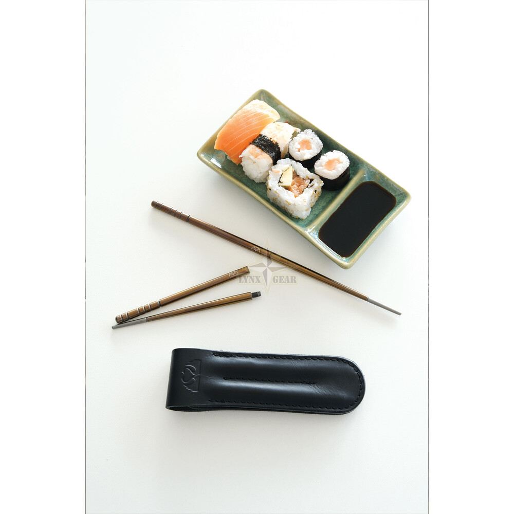 Immerse yourself in Japanese culinary traditions with the Due Cigni Detachable Titanium Sushi Chopsticks, a fusion of elegance, practicality, and innovation. Crafted in Maniago, Italy — the historic “City of Knives” — these chopsticks embody the harmony between tradition and modernity. Their titanium construction guarantees outstanding durability and lightness, while their detachable design makes them convenient for cleaning and transport. A luxurious black leather sheath completes the set, protecting the chopsticks while adding refinement to your dining experience.