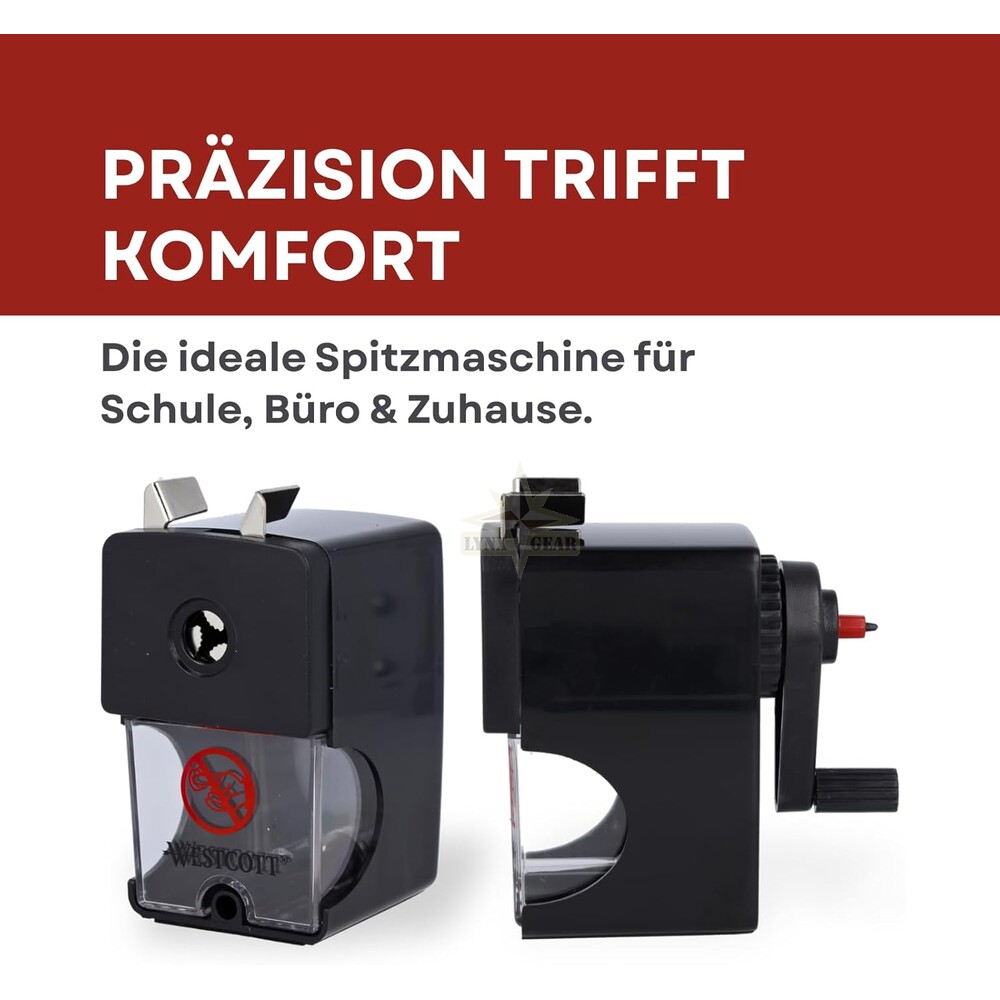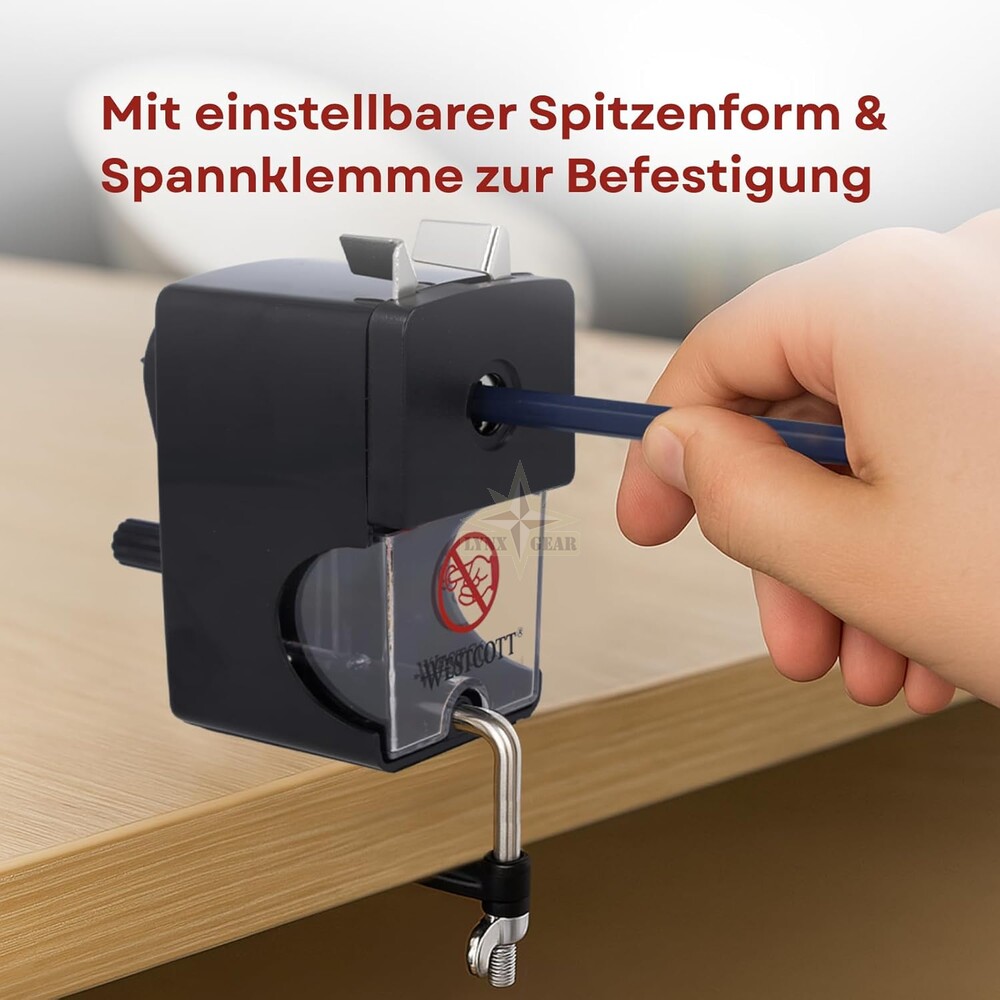 The manual crank mechanism provides full control over the sharpening process, ensuring consistent and precise results. A transparent shaving reservoir allows you to monitor fill levels and empty it quickly when needed.