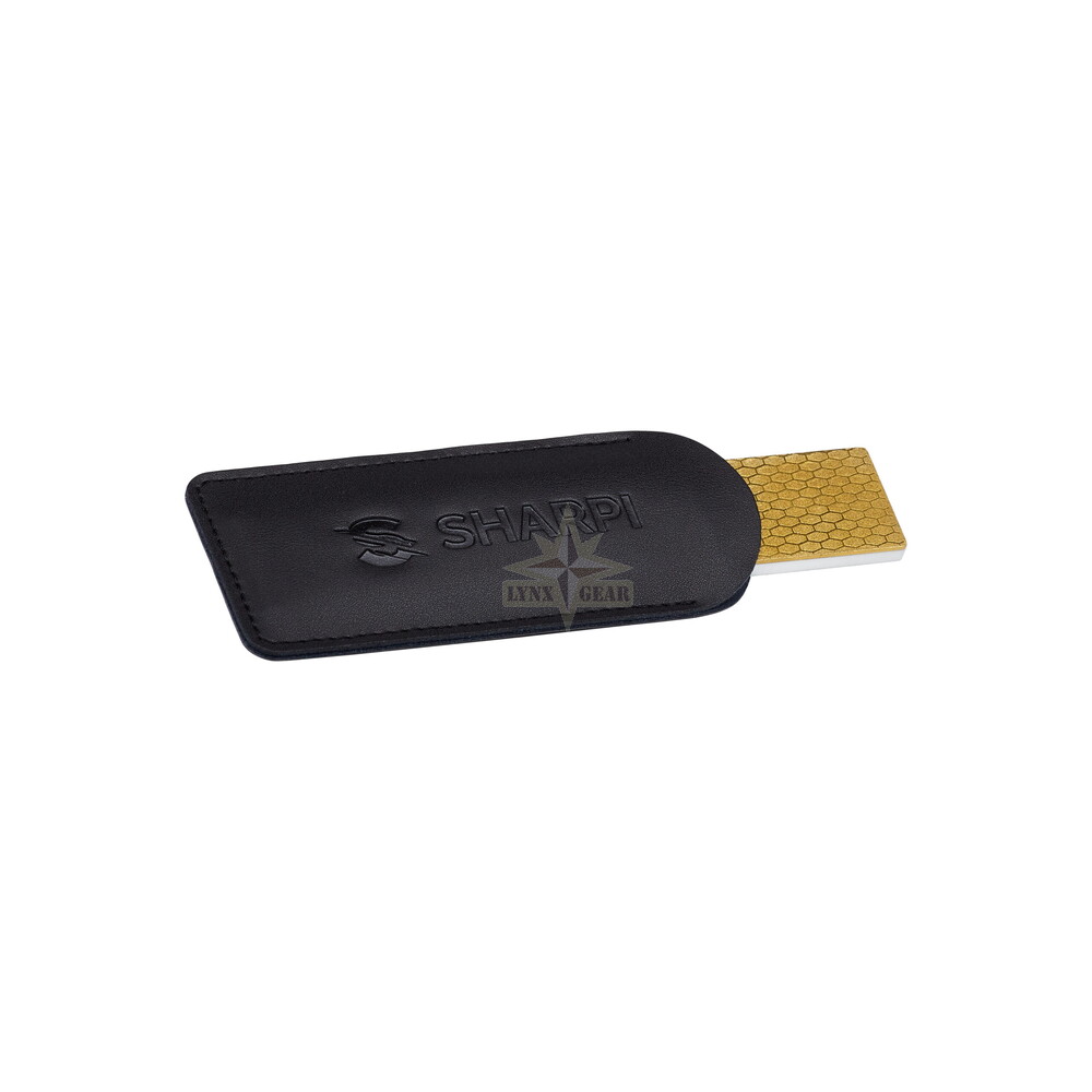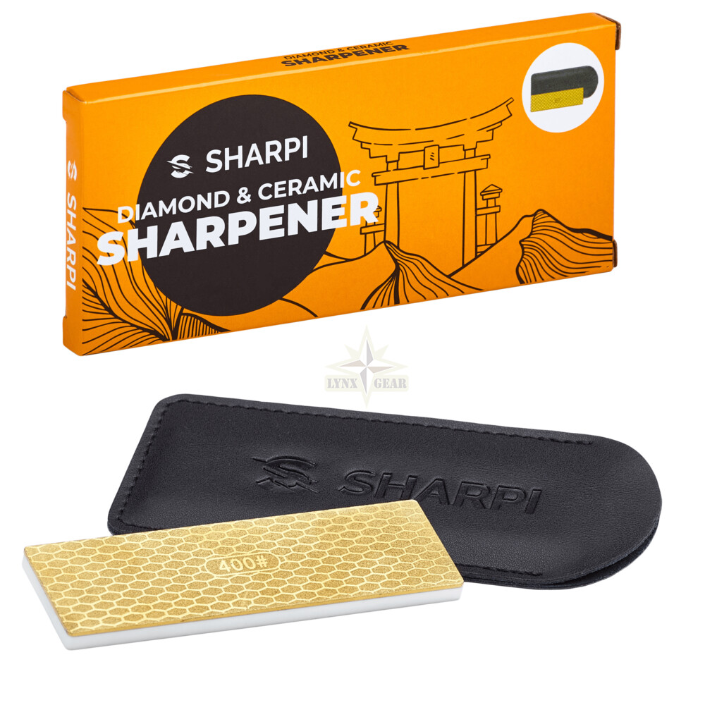 The SHARPI Diamond/Ceramic Plate Knife Sharpener is a compact and efficient tool for sharpening knives and tools with precision. Featuring a dual-surface design with diamond #400 grit for coarse sharpening and ceramic #1000 grit for fine polishing, it ensures blades remain razor-sharp and ready for use. Its portable size and included leather sheath make it a reliable choice for both home and outdoor applications.