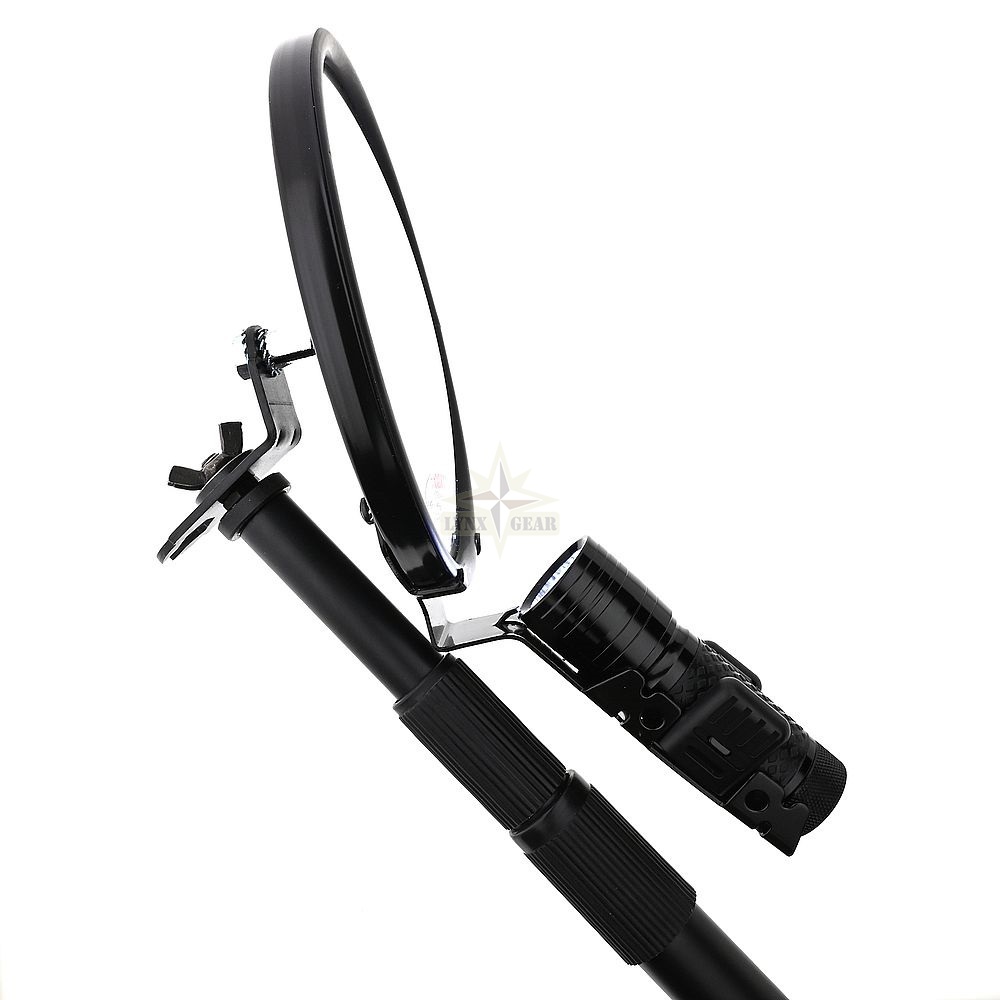 The parabolic design of the mirror enhances visibility by widening the viewing angle, making it easier to detect hidden threats. By fixing the flashlight directly to the mirror, the system ensures consistent illumination without further adjustment. Its telescopic design allows easy portability for field operations, while the detachable flashlight adds versatility for standalone use.
