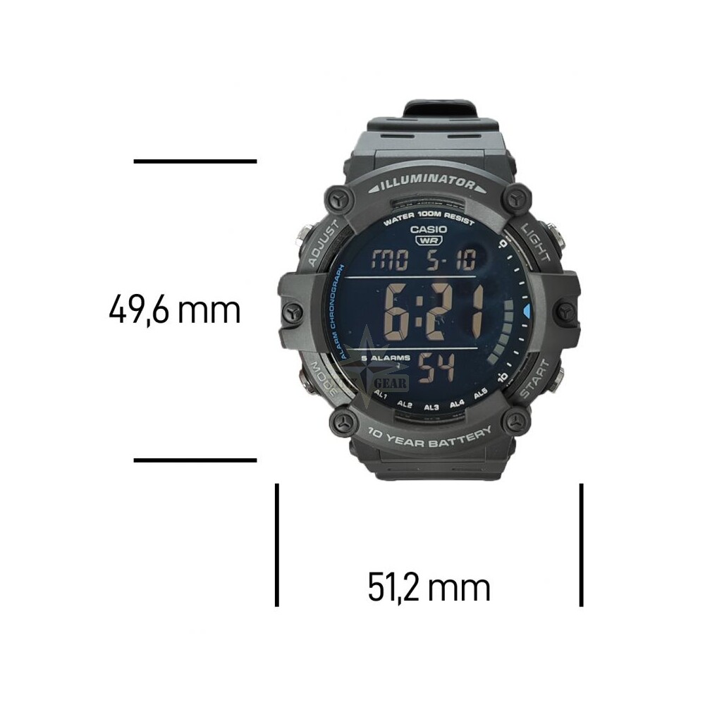 The Casio AE-1500WH-8BV is a durable multisport digital watch designed for reliability and functionality. With a bold wide-face LCD, long-life 10-year battery, and 100m water resistance, it is an excellent choice for outdoor activities, fitness, and everyday wear. The watch combines a sleek resin case and strap with advanced timekeeping features, making it practical for athletes, adventurers, and professionals alike.