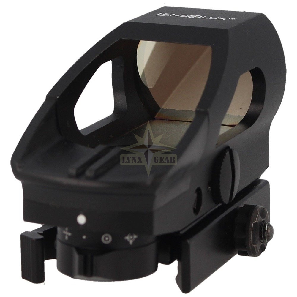 19923, German brand Lensolux red dot sight with mounting on a standard 22 mm RIS rail. It contains four types of target sight (dot, cross, dot with circle and dot with circle overlapping the cross) and a gradual adjustment of the intensity to easily adjust it to the prevailing weather conditions.