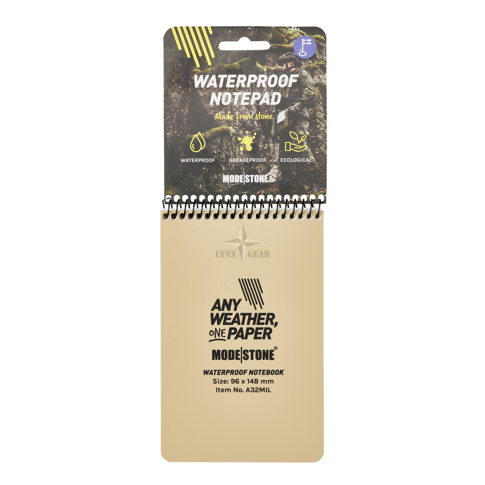MODESTONE® militārais ūdensizturīgais blociņš ir izturīgs piezīmju blociņš, kas paredzēts profesionālai un outdoor lietošanai ekstremālos apstākļos. Tas izgatavots no stone paper materiāla un saglabā pilnu funkcionalitāti mitrā, netīrā un prasīgā vidē.