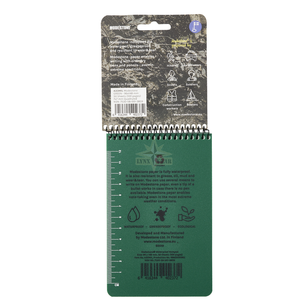 MODESTONE® militārais ūdensizturīgais blociņš – 96 × 148 mm, 50 lapas