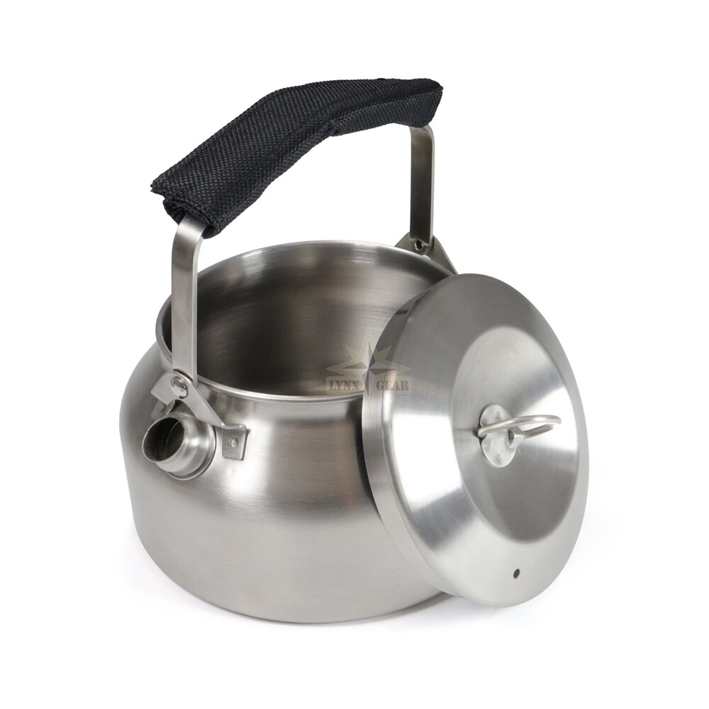 Origin Outdoors nerūsējošā tērauda tējkanna – 1,0 L kempinga tējkanna ar salokāmu rokturi