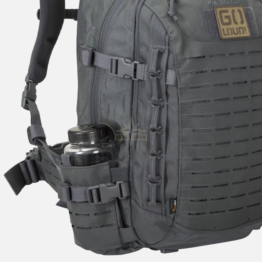 Laser-cut MOLLE/PALS paneļi uz priekšpuses, sāniem un gurnu jostas nodrošina iespēju pievienot papildu ekipējumu, nepievienojot lieku svaru. Pastiprinātā augšējā roktura siksna ir izgatavota no 5,5 metriem parakorda, ko var izmantot ārkārtas situācijās – izdzīvošanai, ekipējuma labošanai vai nostiprināšanai.