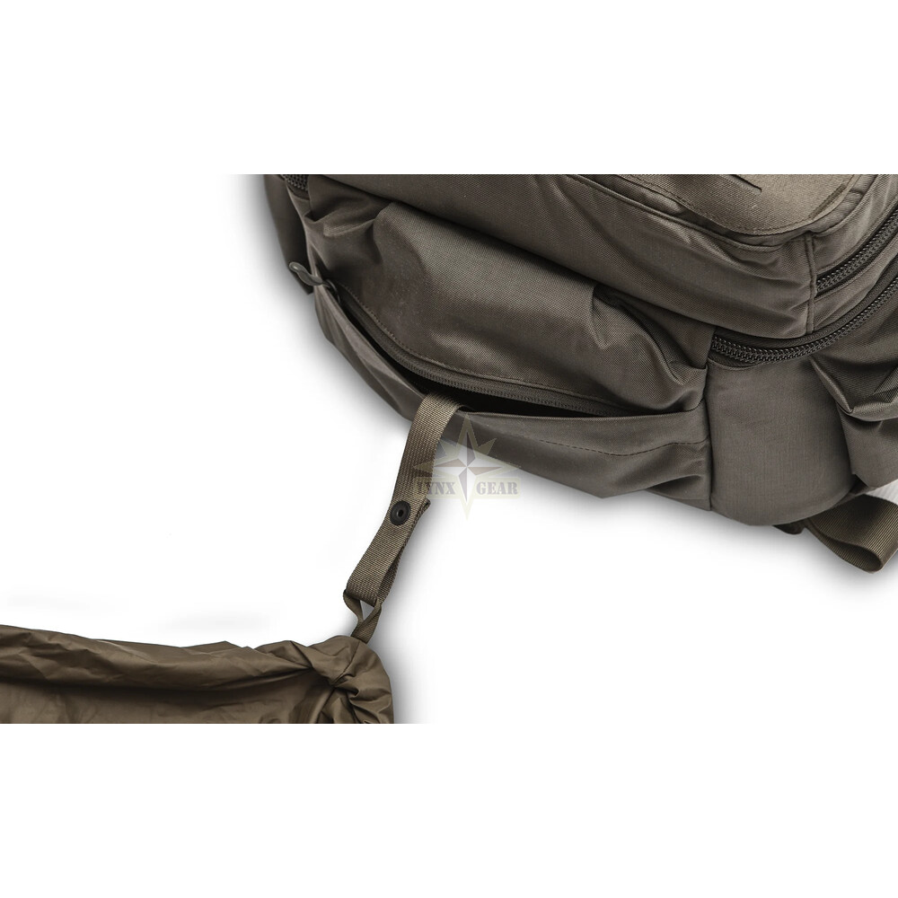 Ārējais slānis apvieno Cordura ar LiteShell korpusu, pastiprinātām šuvēm, Duraflex furnitūru un mil-spec Velcro. Iebūvētais lietus pārsegs tiek ātri izvērsts, lai pasargātu jutīgu elektroniku lietū vai skarbos laikapstākļos.