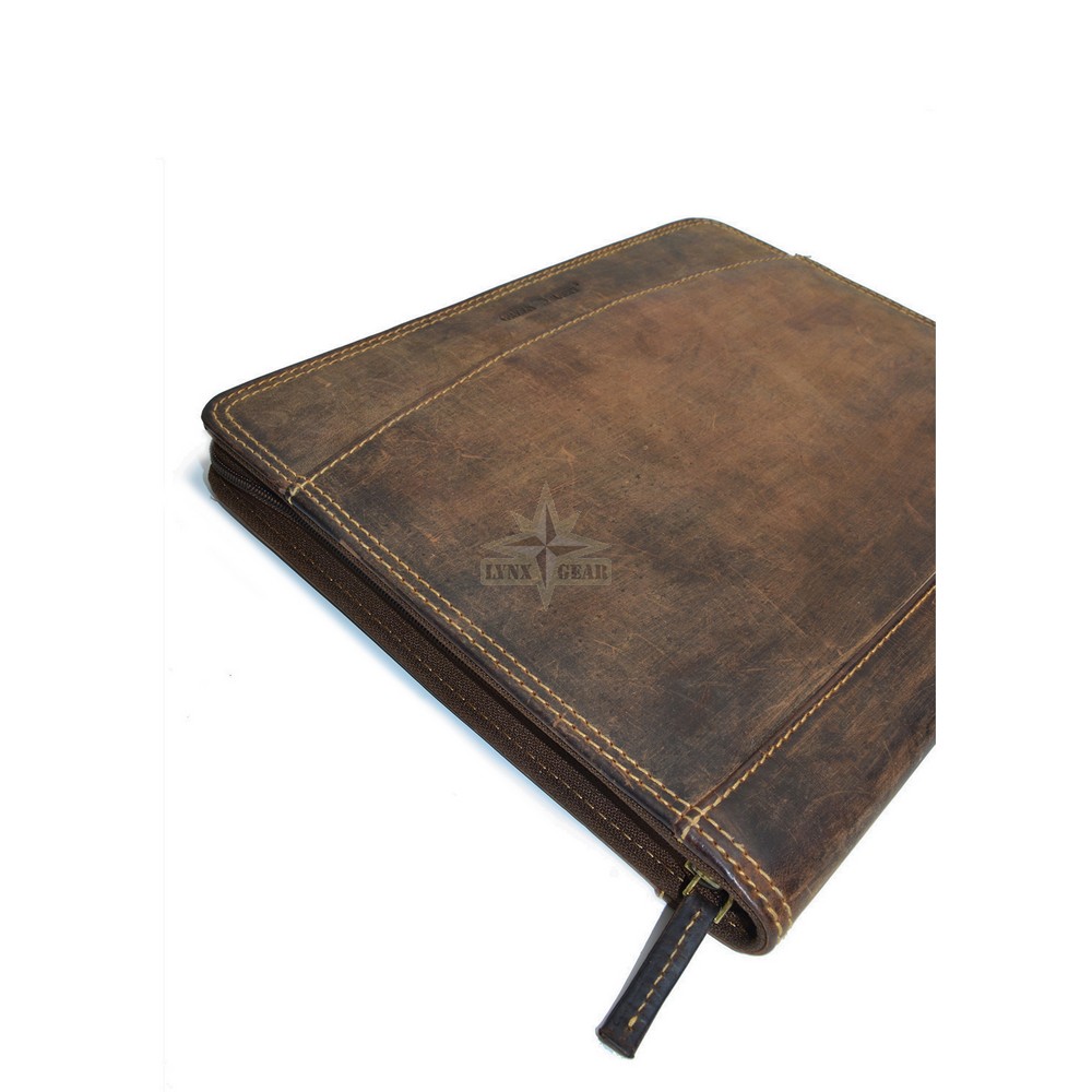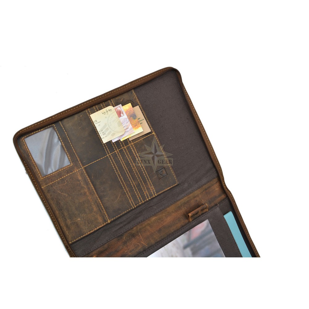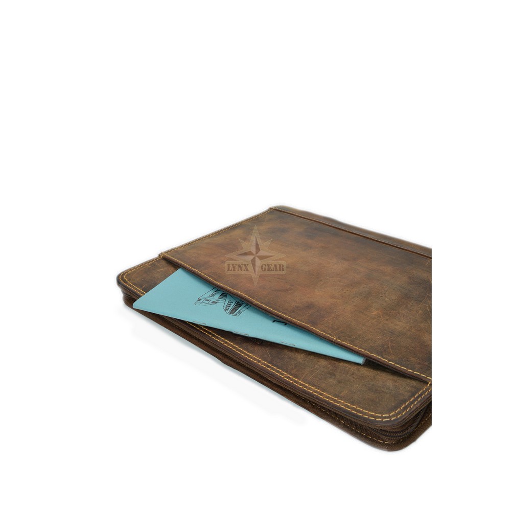 Šī slaidā rāvējslēdzēja rakstāmmape eleganti sakārto ikdienas dokumentus, planšeti un sapulču piederumus, vienlaikus piešķirot jūsu biznesa tēlam šarmu. Izgatavota no biezas pilngraudu liellopu ādas ar Greenburry slaveno “lietoto” apdari, tā ar lietošanu iegūs personisku patinu.