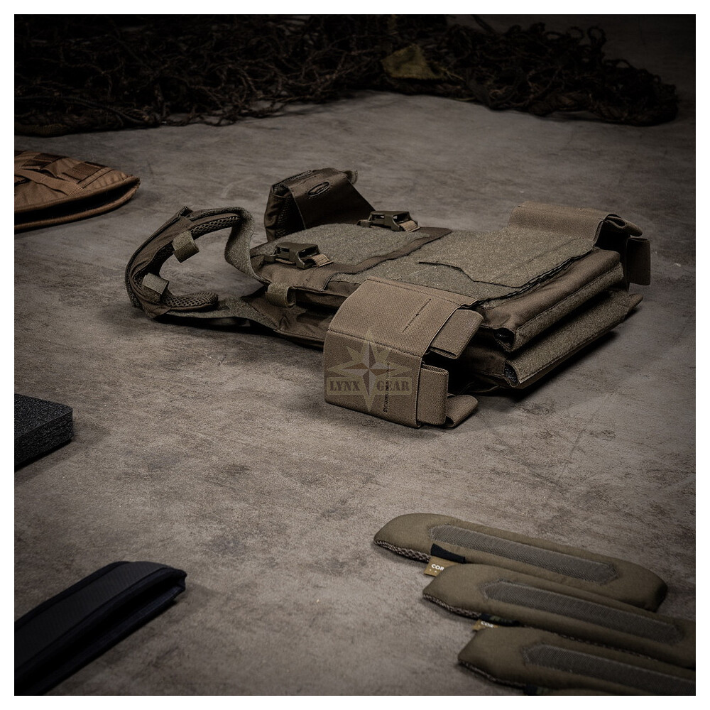 - Боковая стяжка с велкро-застежкой, по 3 ячейки с каждой стороны для магазинов, инструментов или турникета