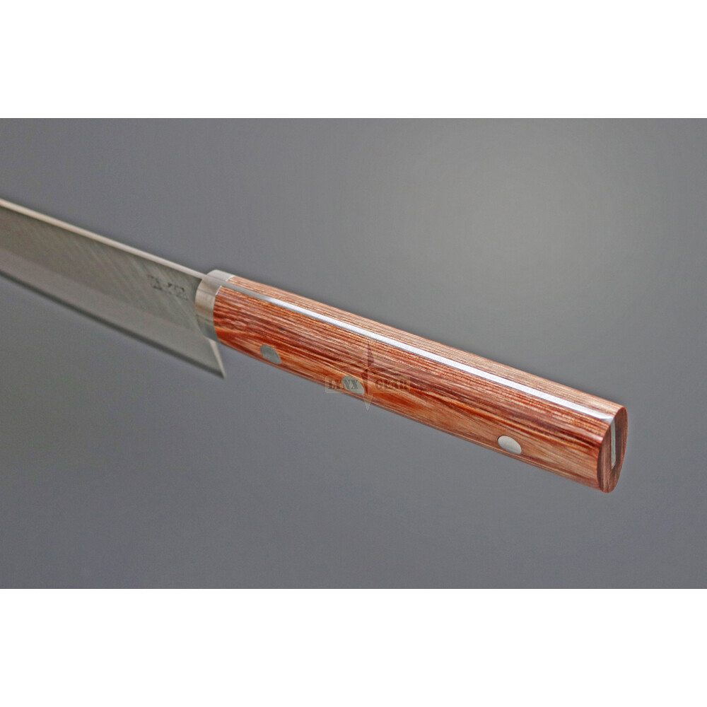 - Рукоятка: прочная фанера с нержавеющей вставкой, тройное заклепочное крепление
