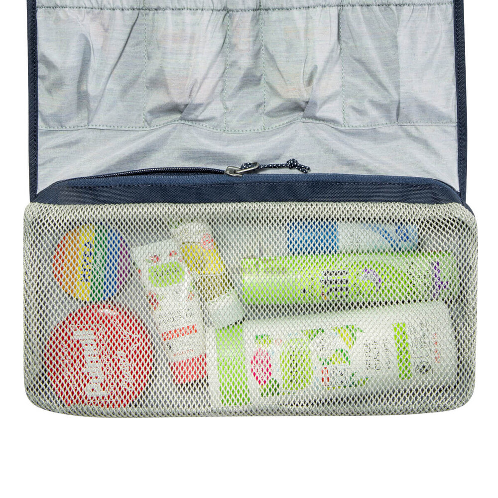 Tatonka Travelcare складная дорожная косметичка — большая складная косметичка, предназначенная для организованного использования в путешествиях и outdoor условиях. В разложенном виде она предлагает несколько отделений и карманов для туалетных принадлежностей и средств личной гигиены, оставаясь при этом компактной и удобной для упаковки.