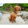 Мягко подложенный нейлоновый ошейник с стабильным алюминиевым кольцом D и пряжкой. Регулируемый, можно стирать в машине, очень прочный. Оснащен точкой крепления для ярлыка с именем.